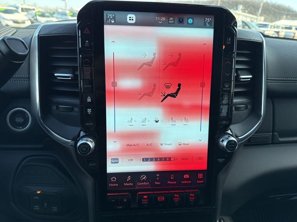 Silver Zynith 2026 Ram 3500 Laramie 4WD 8-Speed Automatic 6.7L I6 This Ram 3500 is well equipped and includes the following features and benefits, #1 Seat Foam Cushion, 115V Auxiliary Rear Power Outlet, 14.4 Touchscreen Display, 17 Speaker Harman/Kardon Premium Sound, 2 Way Rear Headrest Seat, 20 x 8.0 Polished Aluminum Wheels, 2nd Row in Floor Storage Bins, 4 Way Front Headrests, 4G LTE Wi-Fi Hot Spot, 5th Wheel/Gooseneck Towing Prep Group, Active Lane Management System, Adaptive Steering System, Alexa Built-in, Apple CarPlay, Apple CarPlay/Android Auto, Auto Adjust in Reverse Exterior Mirrors, Auto Dimming Exterior Passenger Mirror, Auto High Beam Headlamp Control, Auto Power-Folding Mirrors, Auto-Dimming Exterior Mirrors, Automatic temperature control, Body Color Grille Surround, Brake assist, Bucket Seats, Center Hub, Center Stop Lamp with Cargo View Camera, Chrome Exterior Mirrors, Clearance Lamps, Cold Weather Group, Connected Travel and Traffic Services, Connectivity - US/Canada, Disassociated Touchscreen Display, Drowsy Driver Detection, Dual Wireless Charging Pad, Emergency Vehicle Alert System (EVAS), Engine Block Heater, Exterior Mirrors Courtesy Lamps, Exterior Mirrors with Heating Element, Exterior Mirrors with Memory, Exterior Mirrors with Supplemental Signals, Foam Bottle Insert (door Trim Panel), Folding Flat Load Floor Storage, For Details Visit DriveUconnect.com, For More Info, Call 800-643-2112, Forward and Reverse Utility Lights, Front fog lights, Front Seat Back Map Pockets, Full Length Upgraded Floor Console, Fully automatic headlights, Global Telematics Box Module, Google Android Auto, GPS Antenna Input, GPS Navigation, HD Radio, Heated Front Seats, Heated front seats, Heated Steering Wheel, High Back Seats, Integrated Voice Command with Bluetooth®, Laramie Level 2 Plus Equipment Group, Leather Trimmed Bucket Seats, LED Bed Lighting, Mirror Running Lights, MOPAR Deployable Bed Step, MOPAR Spray in Bedliner, MOPAR Winter Front Grille Cover, MyFlexCare Service Diesel, Navigation System, Off-Road Information Pages, ParkView Rear Back-Up Camera, Power 2-Way Driver Lumbar Adjust, Power 2-Way Passenger Lumbar Adjust, Power Adjust 8-Way Driver Seat, Power Adjust 8-Way Front Passenger Seat, Power Adjust Mirrors, Power Adjustable Pedals with Memory, Power Deployable Running Boards, Power Heat Fold Memory Telescopic Mirrors, Power Telescoping Mirrors, Power-Adjustable Convex Aux Mirrors, Quick Order Package 24H Laramie, Radio: Uconnect 5 Nav with 14.4 Display, Radio/Driver Seat/Mirrors/Pedals Memory, Rain Sensitive Windshield Wipers, Rear 60/40 Folding Seat, Remote Tailgate Release, Selectable Tire Fill Alert, SiriusXM Radio Service, SiriusXM with 360L, Sport Appearance Package, Sport Decal, Sport Performance Hood, Traffic Sign Recognition, Trailer Tow Pages, Ventilated Front Seats.